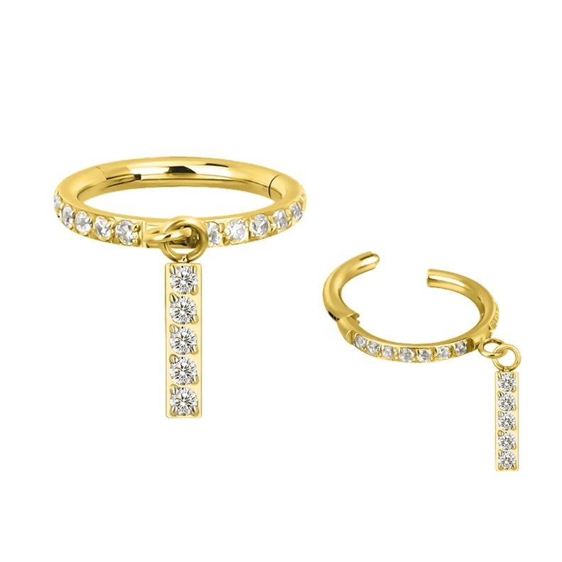 Piercing Anneau Clicker serti de zircons avec pendentif éclatant en Titane PVD Gold