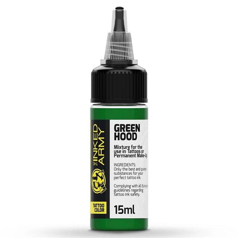 L’encre Green Hood de The Inked Army Tattoo Colors dévoile un vert forêt profond et intense, doté d’une base terreuse qui apporte caractère et stabilité aux compositions. Sa saturation solide et maîtrisée en fait un choix idéal pour les feuillages, les tons sombres ou les remplissages stylisés. Fluide et agréable à travailler, elle pénètre la peau avec régularité et cicatrise avec une intensité stable, offrant un rendu puissant et polyvalent, adapté à une large variété de styles de tatouage.