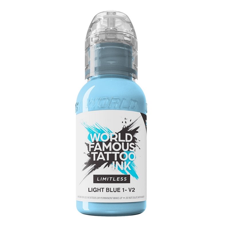 L'encre WORLD FAMOUS Limitless Light Blue 1- V2 propose des pigments de très haute qualité ainsi qu'une pénétration en peau inégalé, avec une cicatrisation au poil.