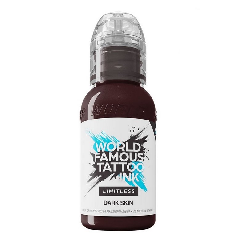 L'encre WORLD FAMOUS Limitless Dark Skin propose des pigments de très haute qualité ainsi qu'une pénétration en peau inégalé, avec une cicatrisation au poil.