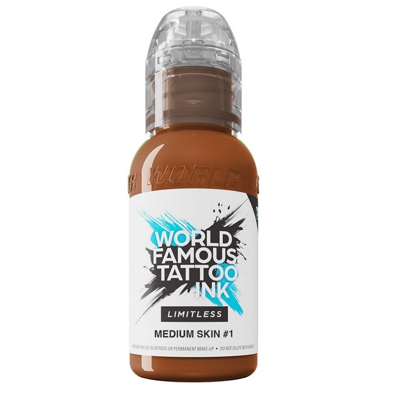 L'encre WORLD FAMOUS Limitless Medium Skin 1 propose des pigments de très haute qualité ainsi qu'une pénétration en peau inégalé, avec une cicatrisation au poil.