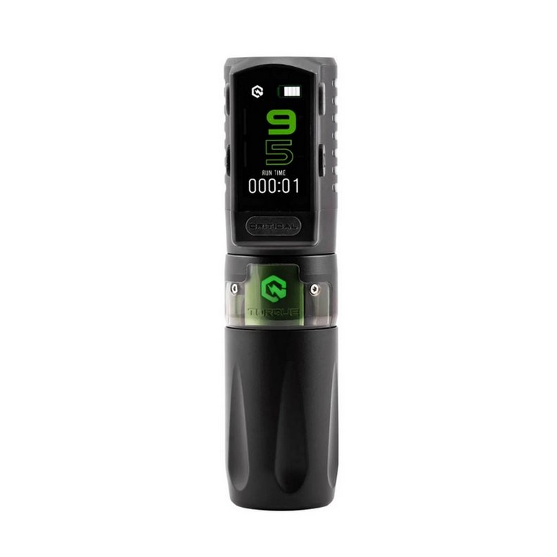 La machine Torque a une toute nouvelle batterie qui est une Critical V3. Elle est dotée d'un écran couleur plus grand et plus intuitif. Pour obtenir pleins de fonctionnalités, ainsi que de mettre la fonction de minuterie, afin de vous aider dans le suivi du temps lors de votre séance de tatouage.