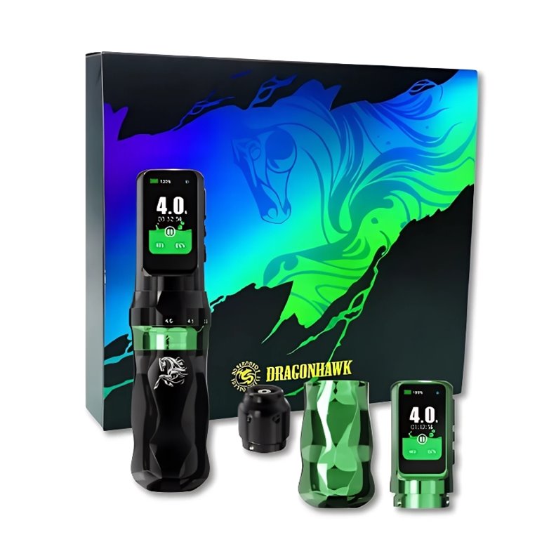 Découvrez la Dragonhawk Fold Pro Edition Year of the Horse, une machine à tatouer conçue pour offrir 40 % de puissance supplémentaire et une maîtrise absolue de chaque trait. Pensée pour les tatoueurs exigeants, elle allie performance, stabilité et ergonomie pour exceller aussi bien en lining ultra précis que pour du remplissage intense.