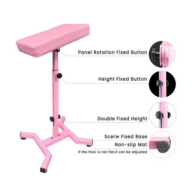 Ce repose bras de tatouage professionnel allie design ergonomique, confort haut de gamme et stabilité renforcée, le tout dans une finition rose qui se démarque tout en restant professionnelle.
