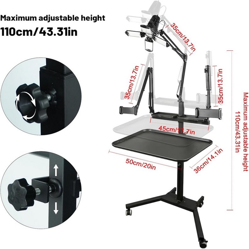 Son plateau magnétique réglable en hauteur jusqu’à 110 cm permet de garder à portée de main vos produits essentiels, tout en garantissant une organisation parfaite. La base ultra stable assure une sécurité totale, même lors de longues heures de travail, et reste immobile grâce à sa conception robuste et ergonomique.