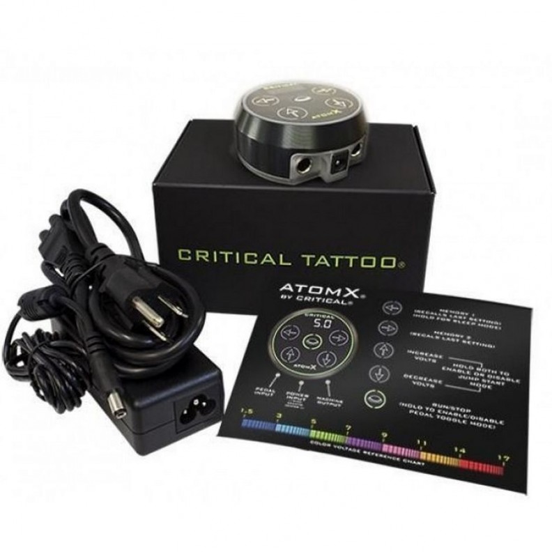 La toute nouvelle alimentation Critical Atom X offre ce qui a été demandé par la plupart des tatoueurs sur les 10 dernières années. Une combinaison parfaite de visualisation de votre tension, soit par affichage, soit par couleur.